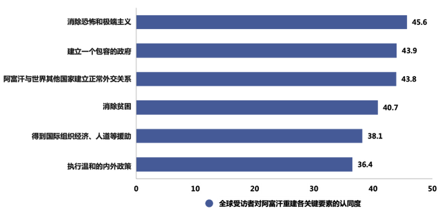 △ 图5 全球受访者对阿富汗重建各关键要素的认同度